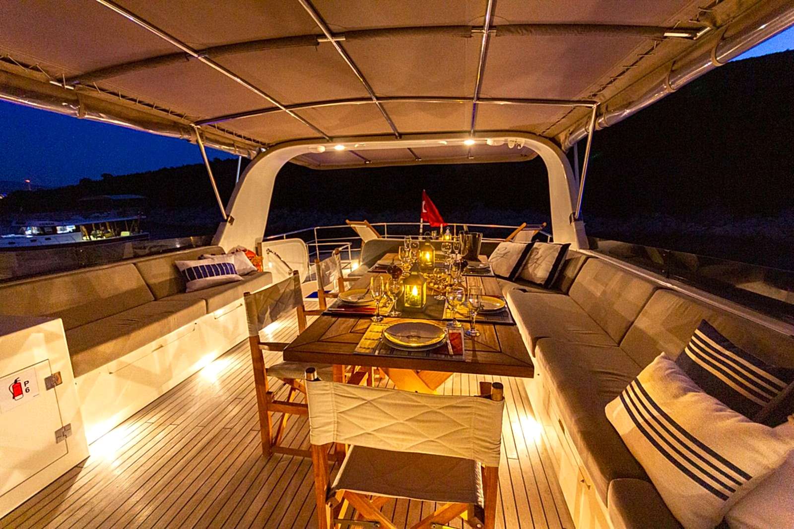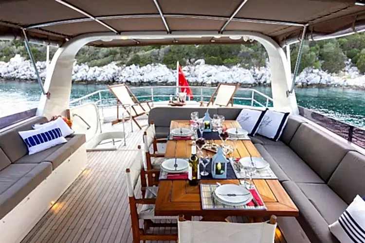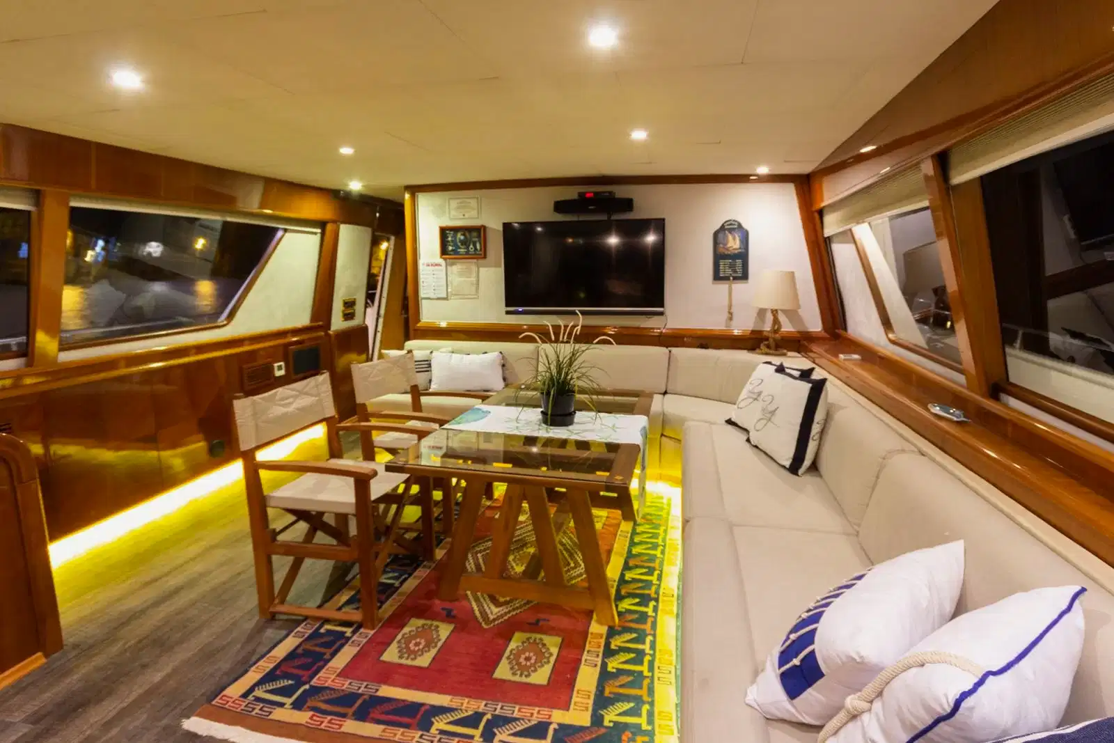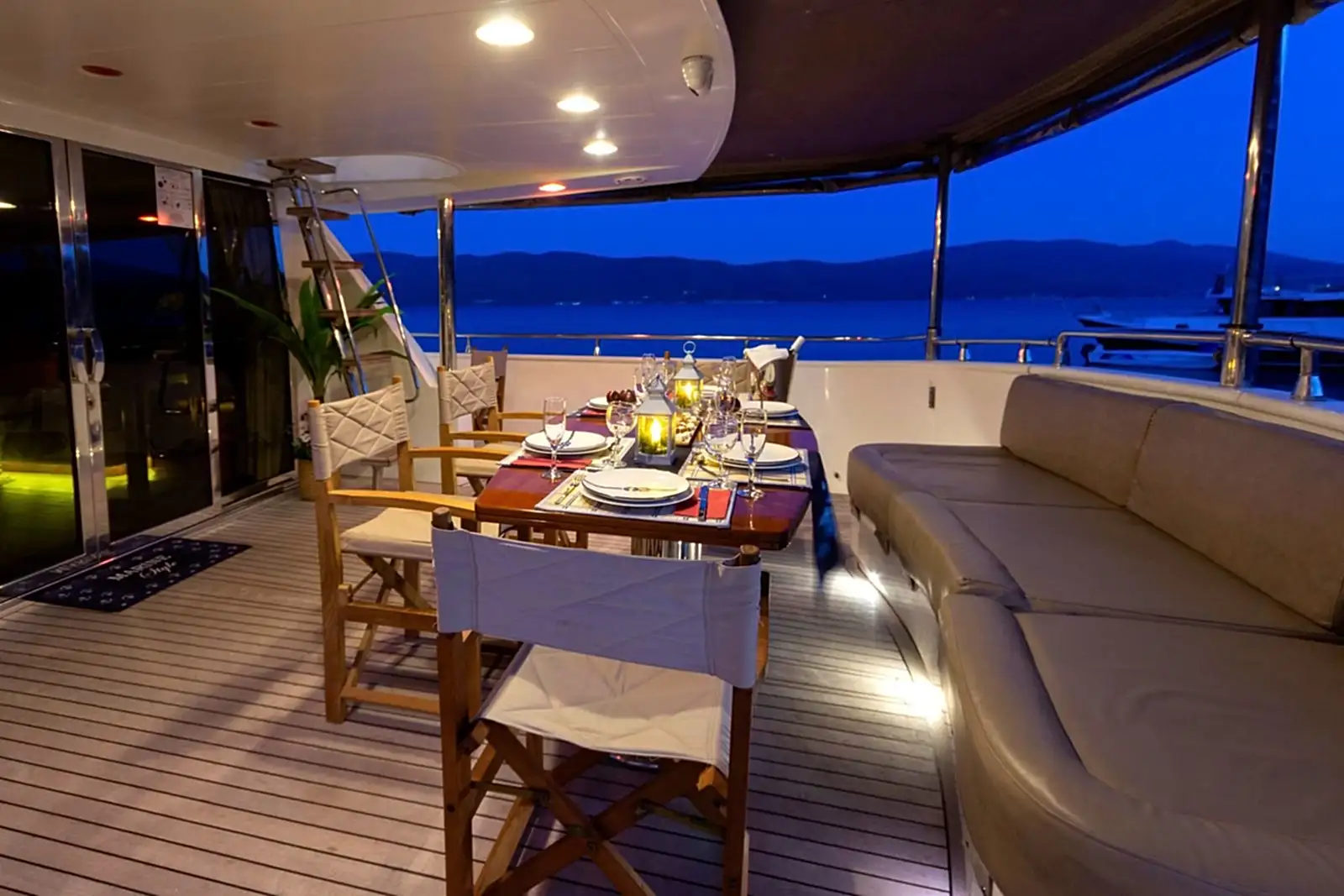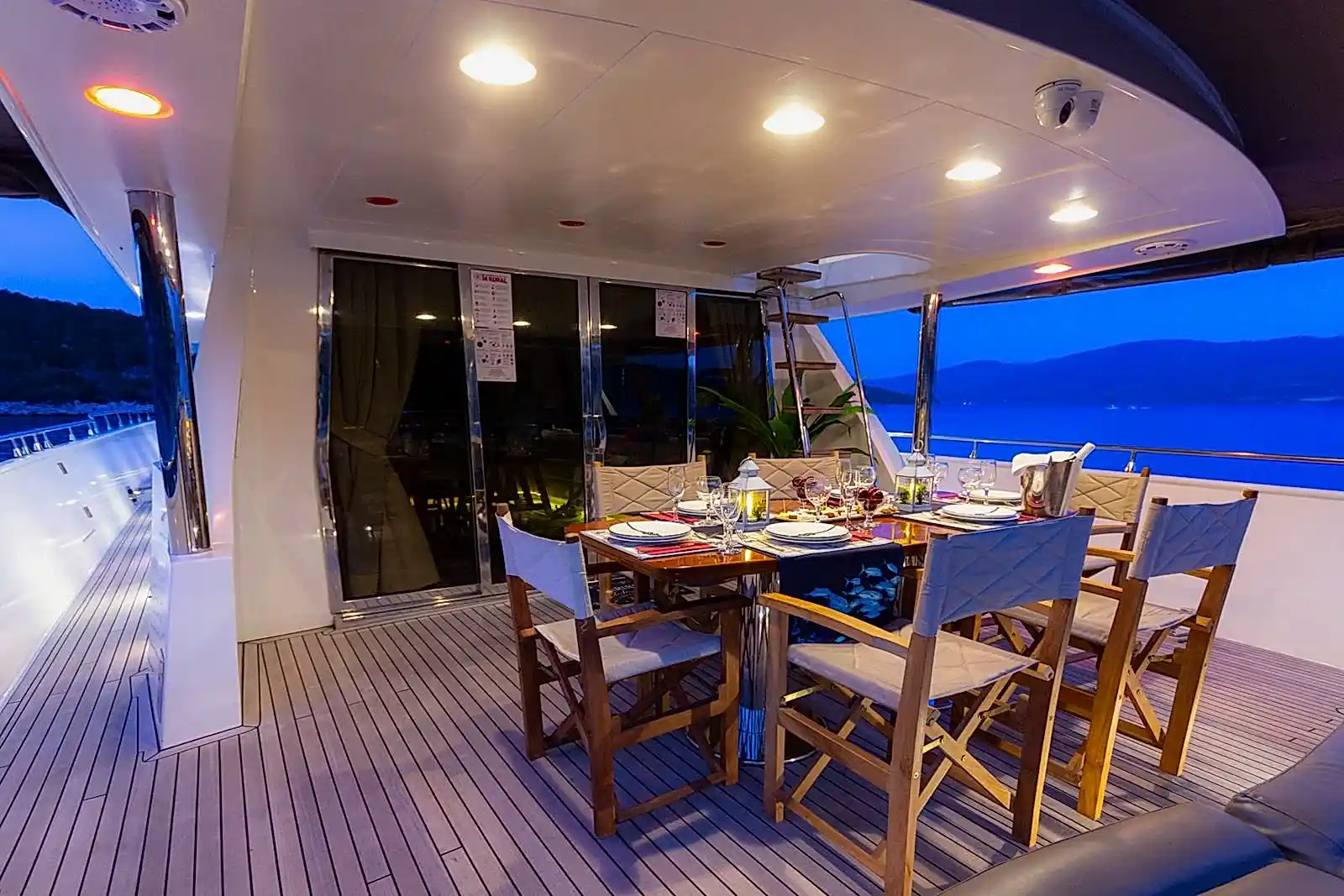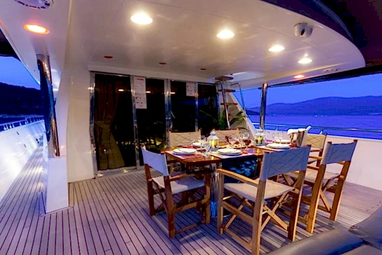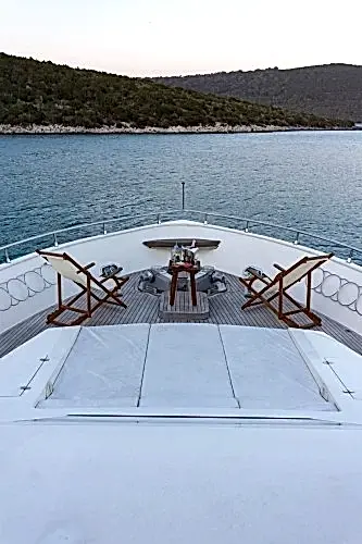 Yatın 1 aşçı, 1 hostes, 1 gemici ve 1 kaptan olmak üzer 4 kişilik mürettebatı mevcuttur.